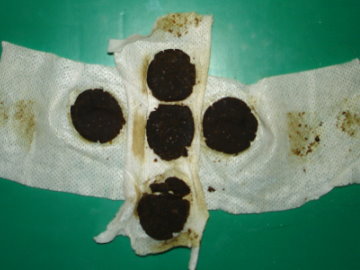 將旁邊一顆顆小小的黑色藥丸放上去,